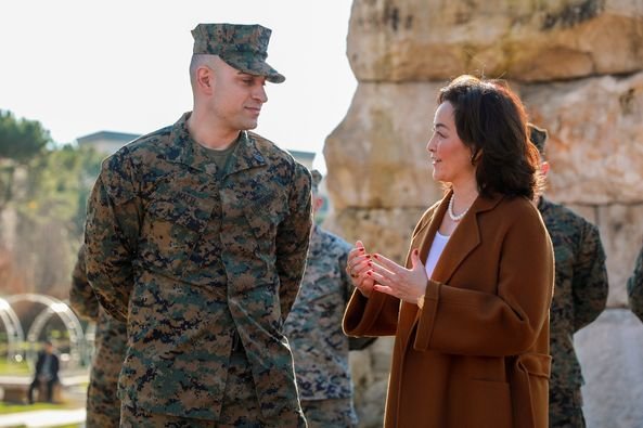 “Kreu i Trupës së Marinsave të ambasadës së SHBA në Tiranë Joseph Matti u rrit në gradën Rreshter i Lartë sot gjatë një ceremonie të veçantë në Sheshin Skënderbej, ku mori pjesë edhe ambasadorja Kim.