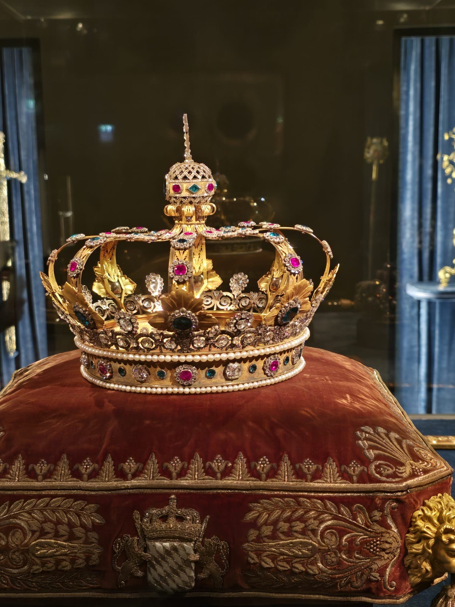 Kurora Mbretërore e Bavarisë, qëndron mbi një jastëk prej kadifeje të kuqe të zbukuruar me stemën e Bavarisë.