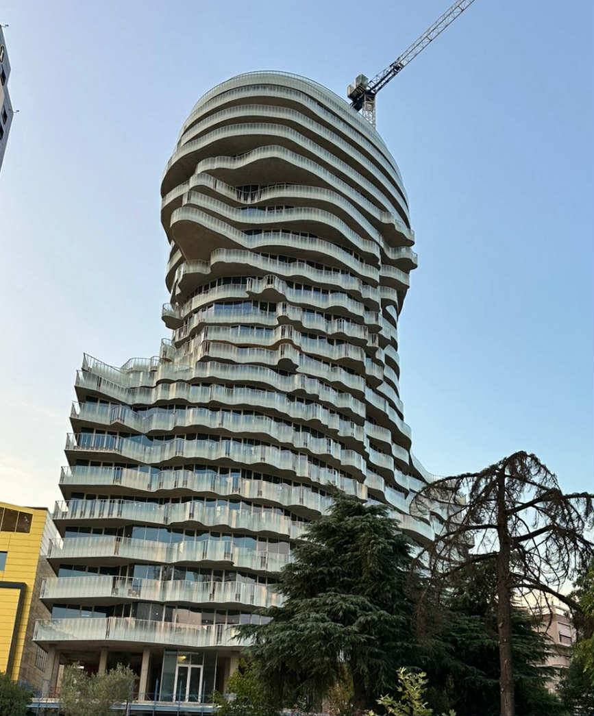 Në qendër të Tiranës, pranë Hotel “Tirana International”, një godinë e re ka ngjallur debate e kureshtje që prej ditës së parë kur nisi të ngrihej.