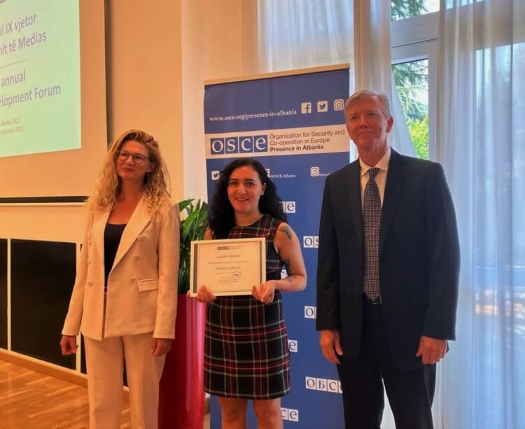 OSBE ka vlerësuar me çmim investigimin e gazetares, Arbjona Çibuku nga Citizens Channel, me titull “Pylli orbital i Tiranës është 200 vite larg”.