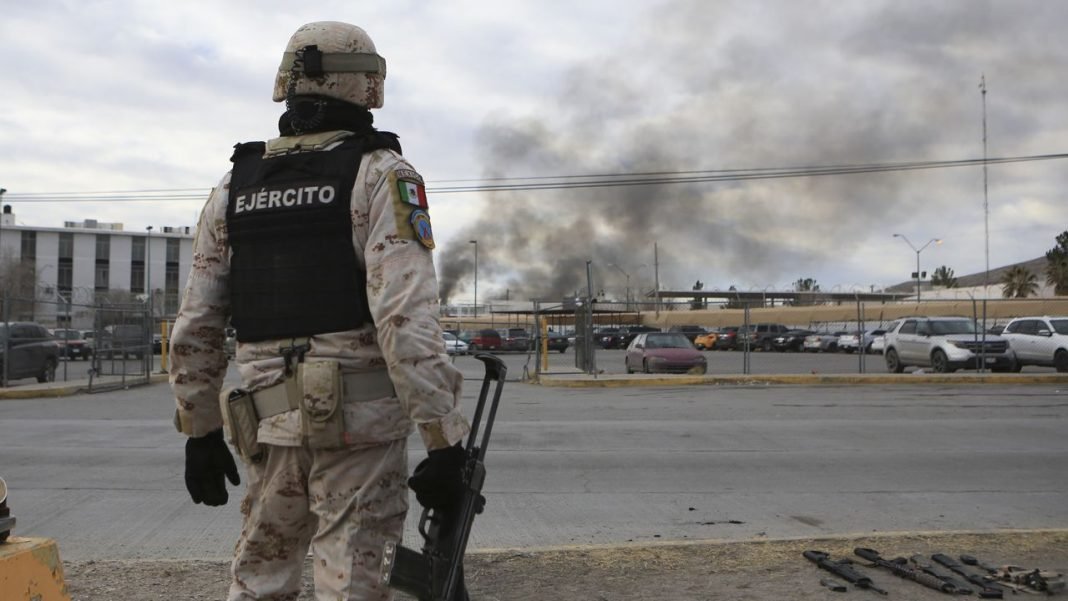 Anëtarët e Ushtrisë Meksikane sigurojnë një zonë jashtë burgut