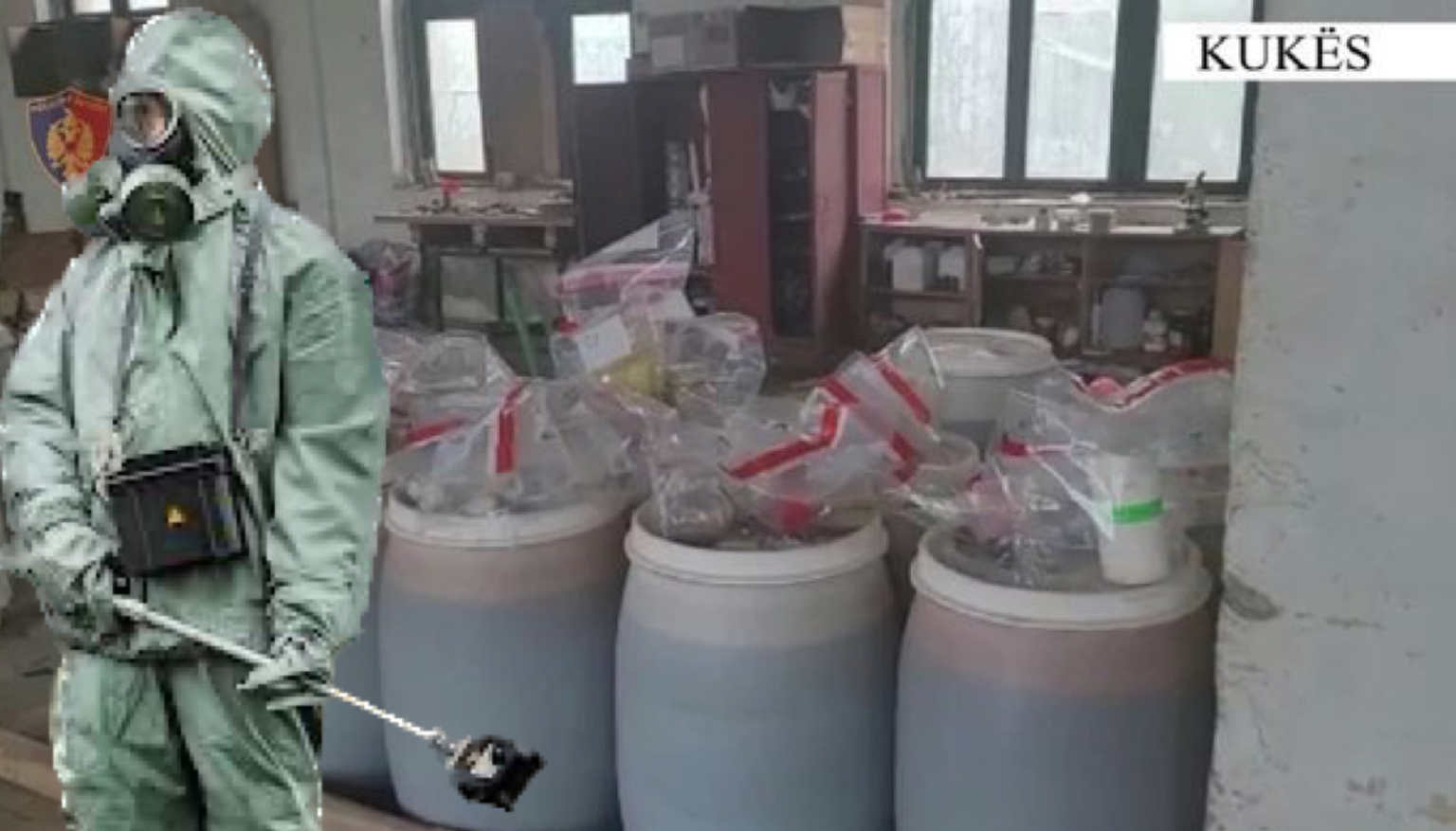 Policia e Kukësit gjeti dhe sekuestroi në një magazinë dhjetëra bidona plastike, ku dyshohet se mbaheshin lëndë radioaktive natyrore dhe lëndë kimike.